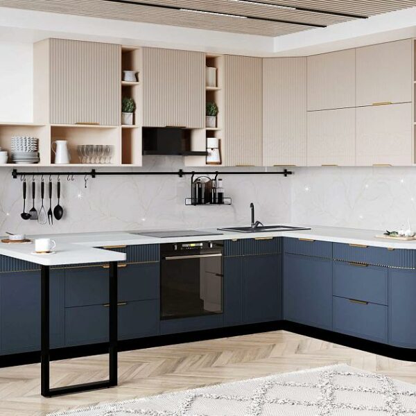 Кухонный гарнитур П-образный с витриной Тиффани 30