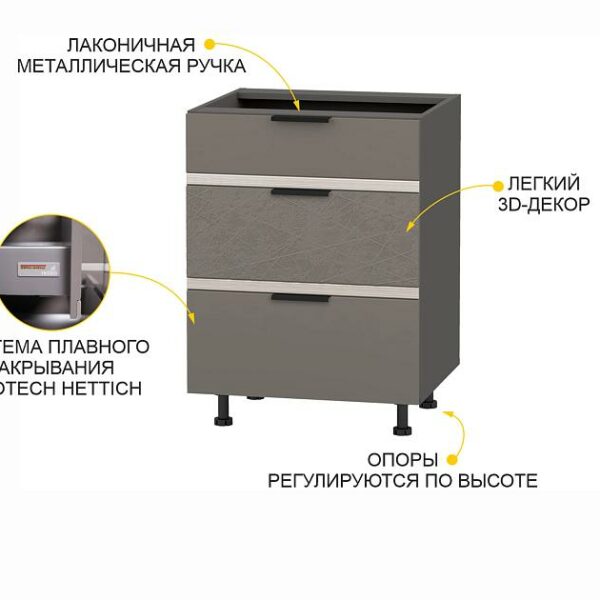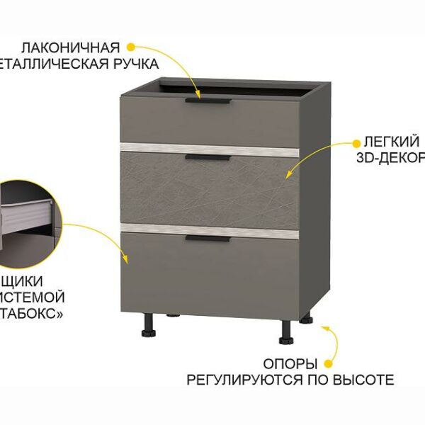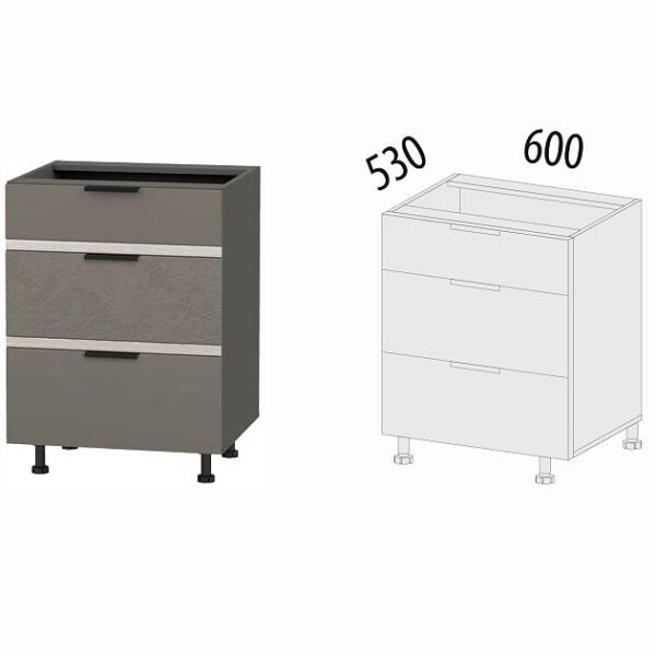 Напольный шкаф (3 ящика с метабоксами) Грейс 105.66
