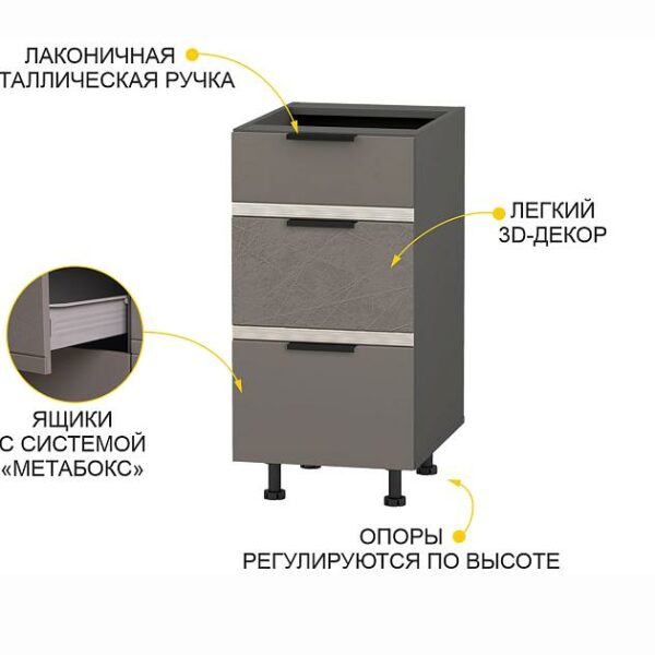 Напольный шкаф (3 ящика с метабоксами) Грейс 105.59
