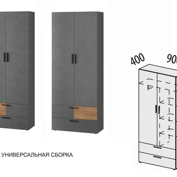 Шкаф для одежды с полками и штангой Джерси 602.17