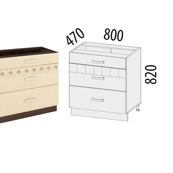 Напольный шкаф (3 ящика с метабоксами) Аврора 10.67.2