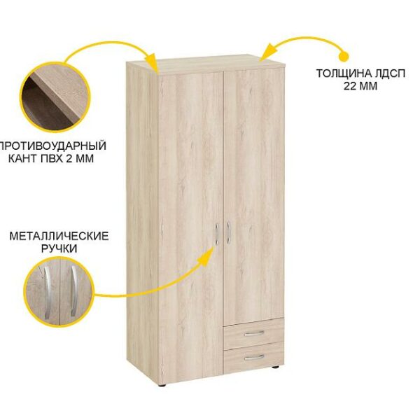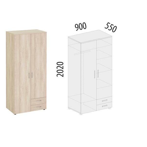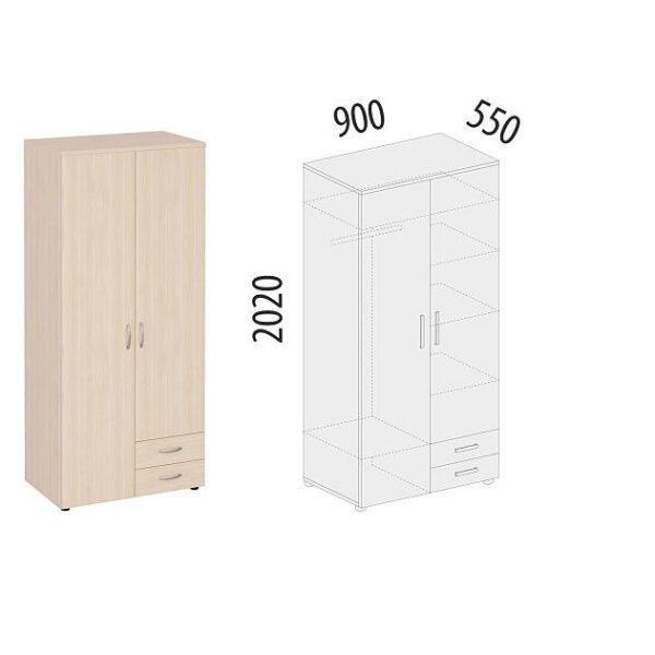 Шкаф для одежды с полками и штангой Аляска 502.01