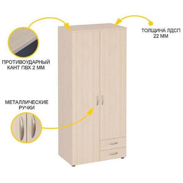 Шкаф для одежды с полками и штангой Аляска 501.01