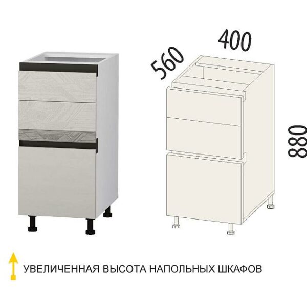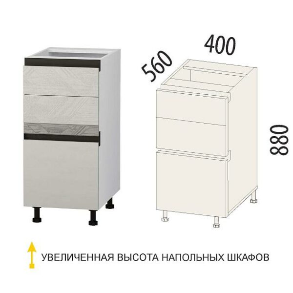 Напольный шкаф (3 ящика с метабоксами) Бостон 104.66