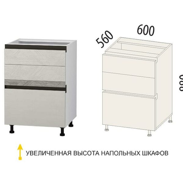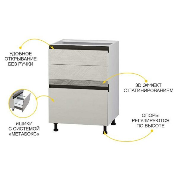 Напольный шкаф (3 ящика с доводчиком Titusoft) Бостон 60