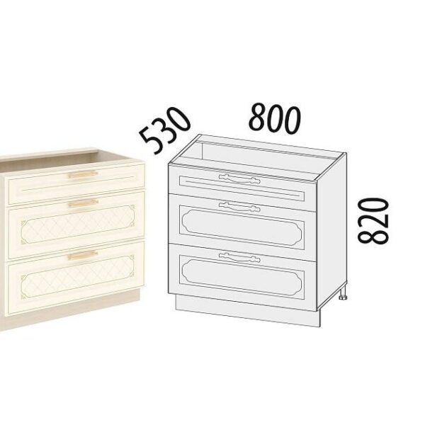 Напольный шкаф (3 ящика с метабоксами) Милана 23.59