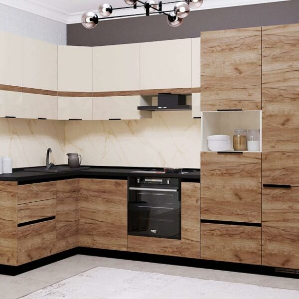 Кухонный гарнитур угловой с витриной Бруклин 1