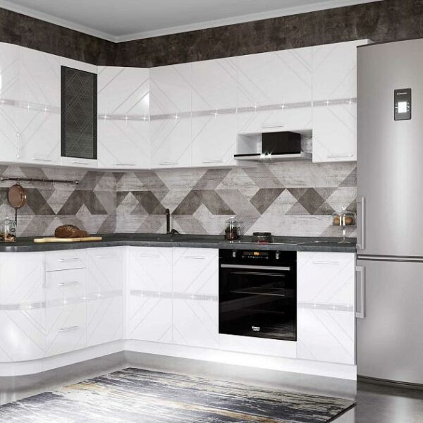 Кухонный гарнитур угловой с витриной Бьянка 43