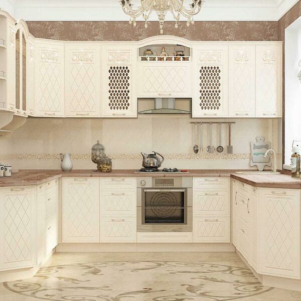 Кухонный гарнитур П-образный с витриной Тиффани 29