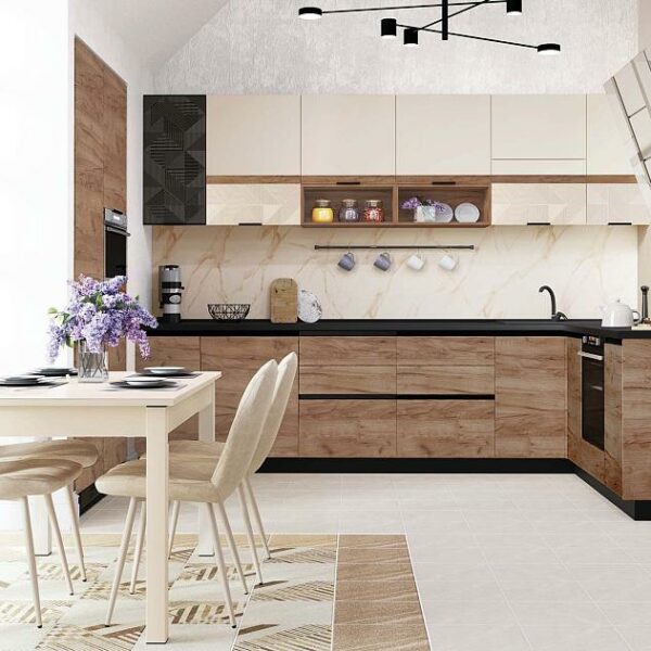 Кухонный гарнитур П-образный с витриной Бостон 38