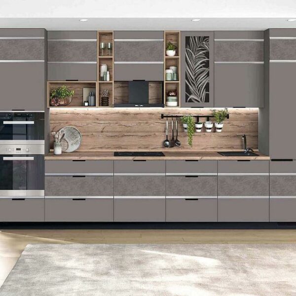 Кухонный гарнитур П-образный с антресолями Графит 46