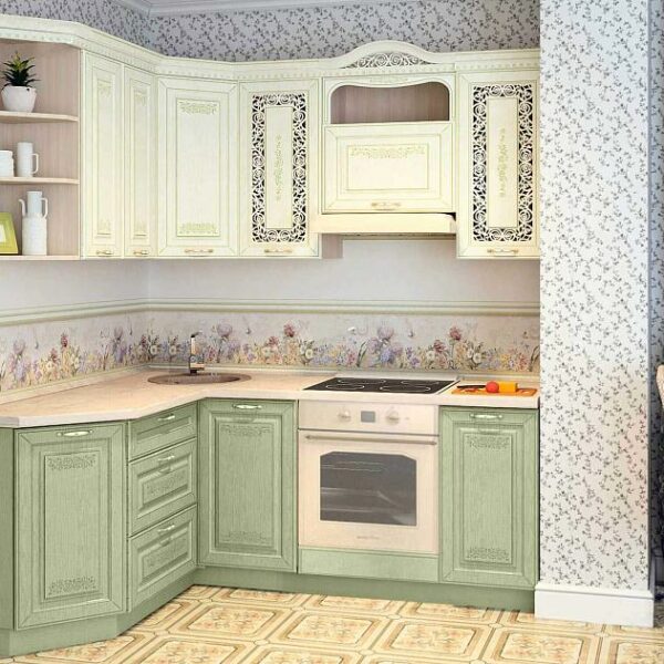 Кухонный гарнитур П-образный с витриной Оливия 68