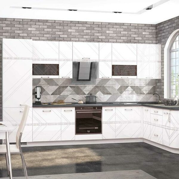 Кухонный гарнитур угловой с витриной Бьянка 1