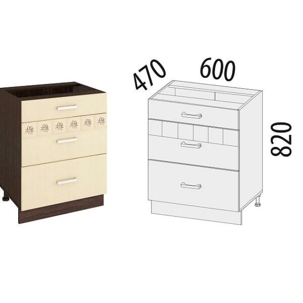 Плавное закрывание дверцы обеспечивают петли с доводчиками. Ножки регулируются по высоте, что позволяет при установке компенсировать возможные неровности пола. Модуль является универсальным и может быть собран как с левым, так и с правым открыванием дверцы. Глубина стола с учетом столешницы 600 мм. Технологический зазор от стены, который останется после установки стола со столешницей, позволит визуально скрыть трубы, крупные розетки и плинтусы.