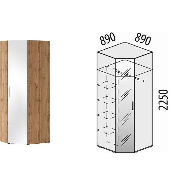 Шкаф для одежды угловой (прав) Мегаполис 55.03