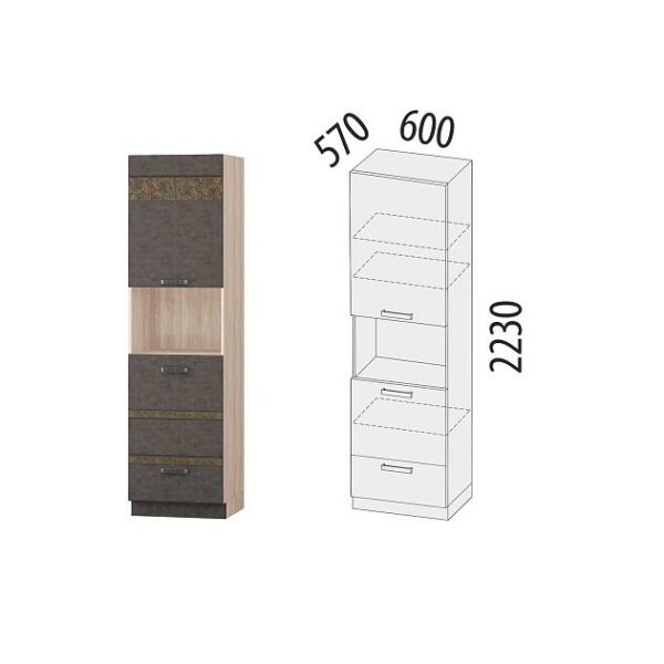 Фасад выполнен из МДФ толщиной 16 мм. Облицован пленкой ПВХ европейского производителя. Корпус выполнен из ЛДСП толщиной 16 мм.