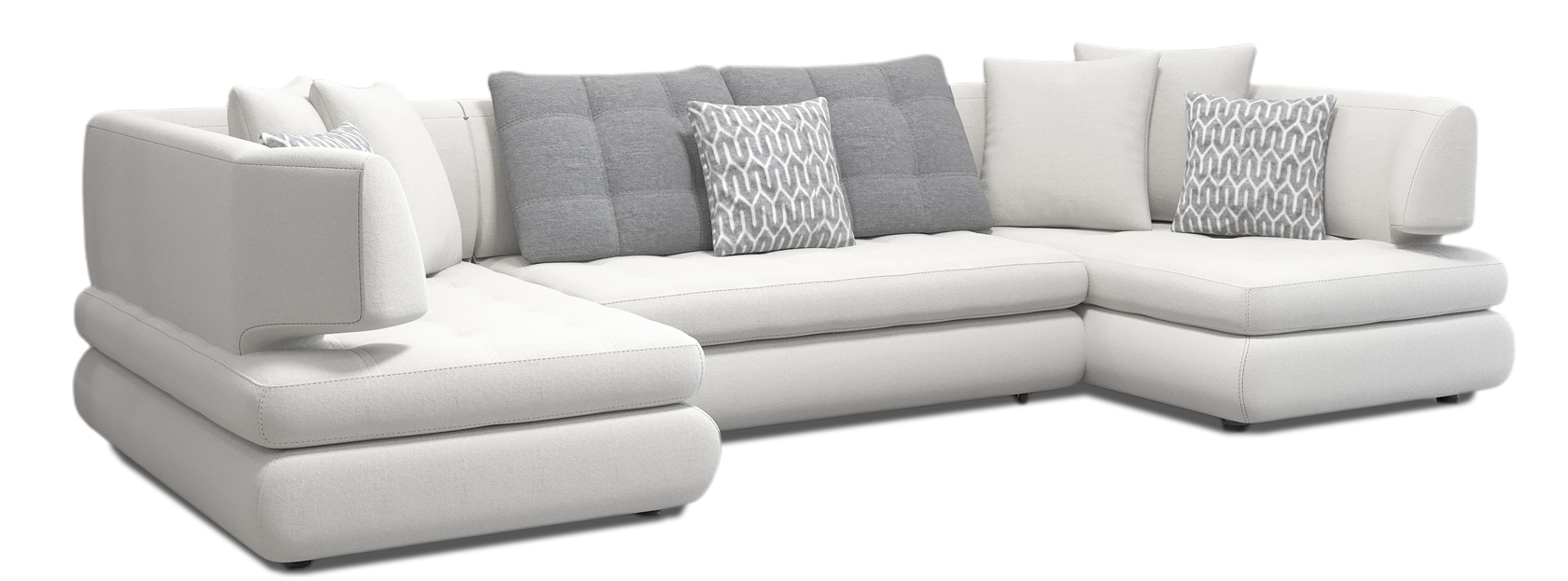 Разнообразие модульной линейки позволит максимально полно оформить интерьер комнаты. В линейку входят: прямой, угловой, П-образный диваны, а также кушетка, кресло и пуф.