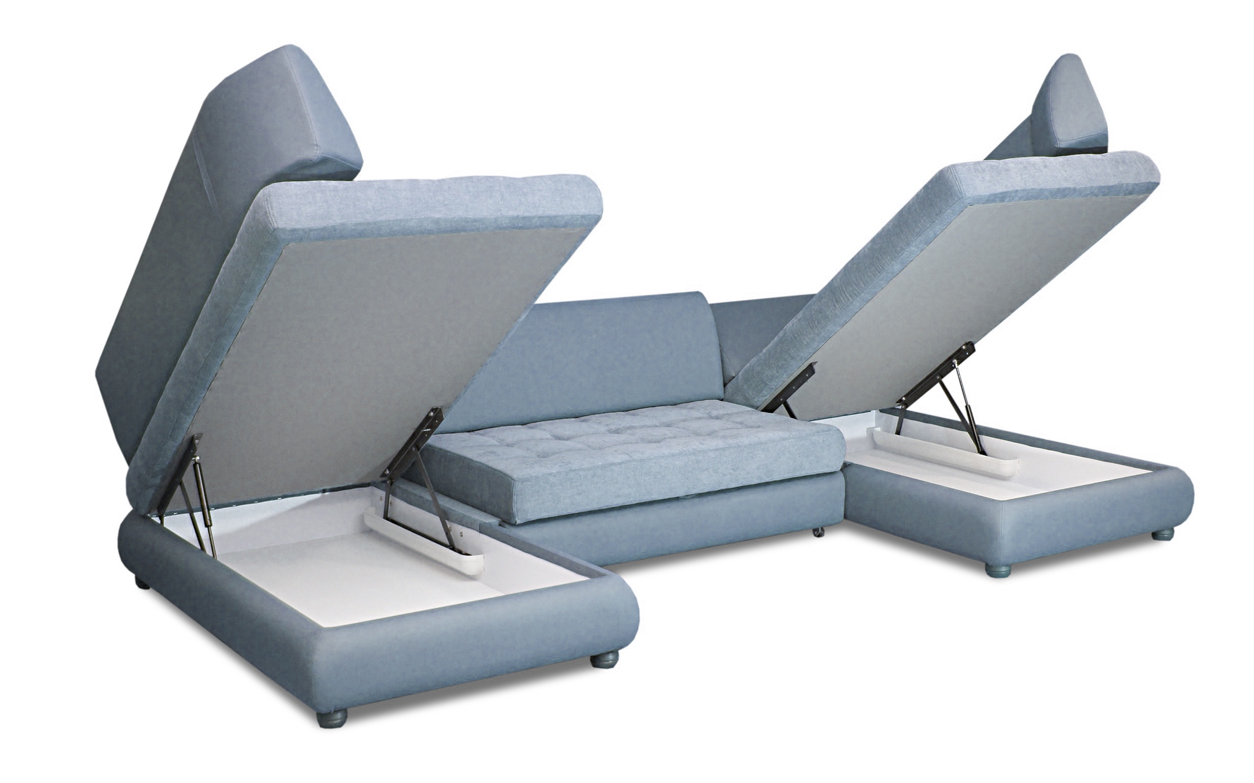 Разнообразие модульной линейки позволит максимально полно оформить интерьер комнаты. В линейку входят: прямой, угловой, П-образный диваны, а также кушетка, кресло и пуф.