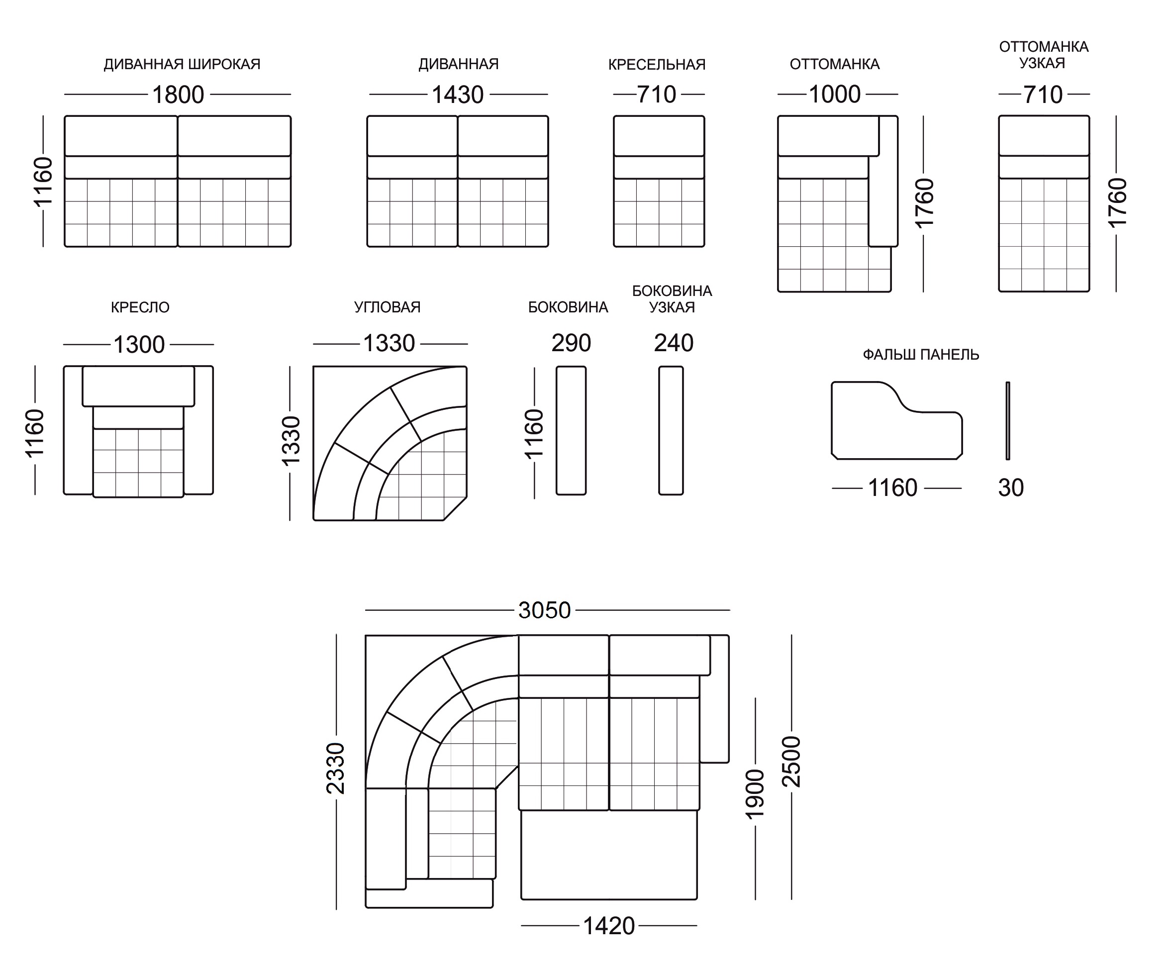 ● Модульные элементы серии идеально сочетаются друг с другом, что дает возможность свободно комбинировать их, создавая оригинальные формы дивана.