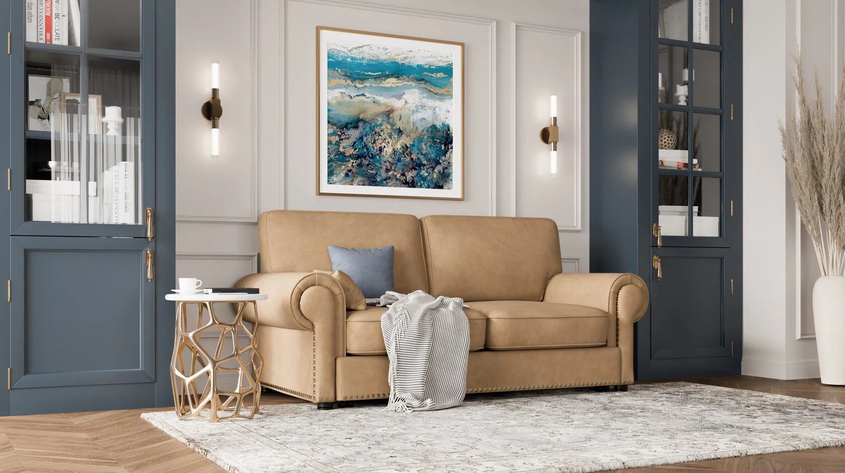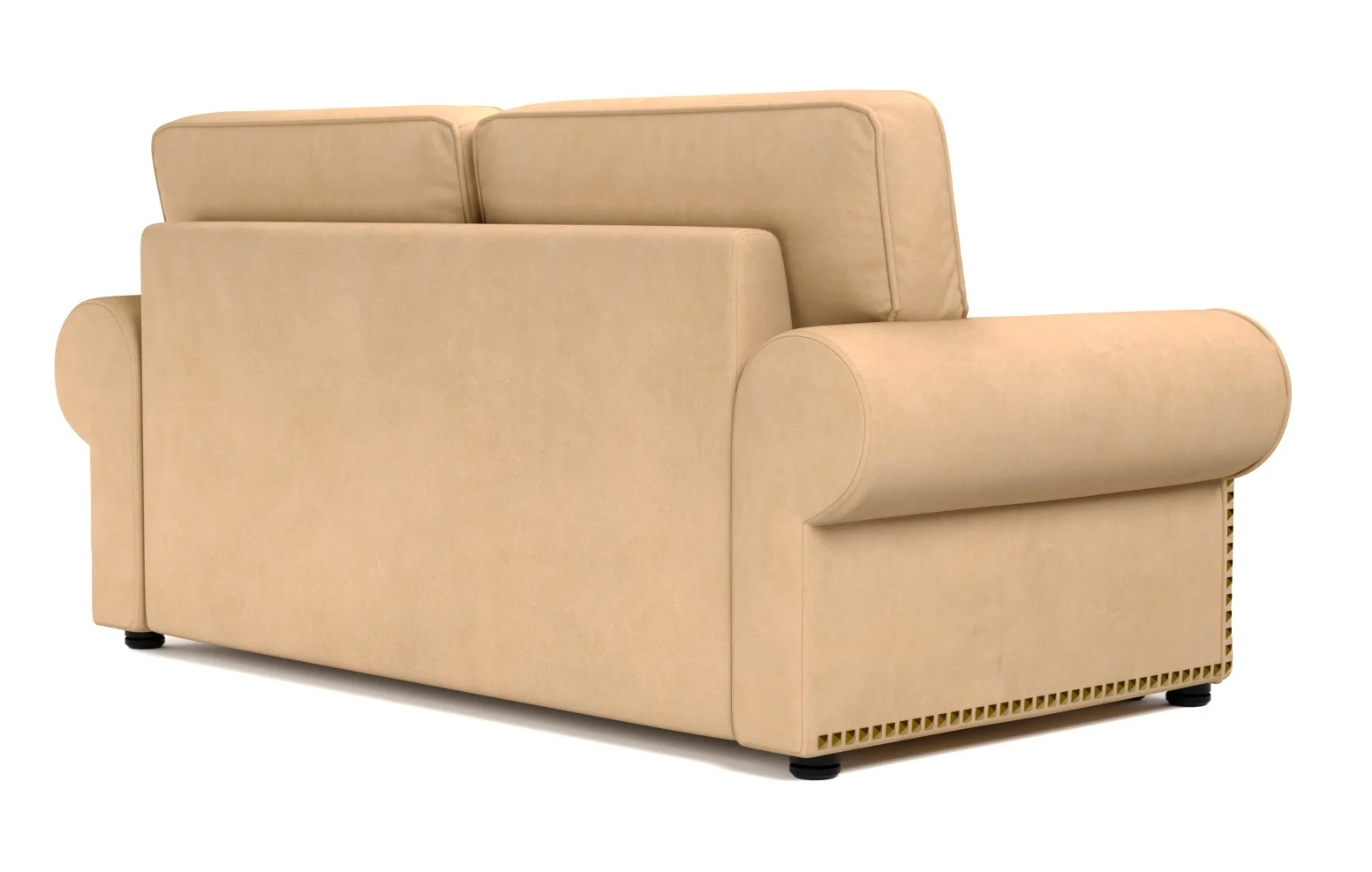 Интерьерный прямой диван Бергамо создан для небольших помещений и квартир-студий. Закругленные подлокотники, декорированные кантом по периметру, декоративные гвоздики, придают дивану роскошный вид. Американский классический стиль смотрится эффектно.