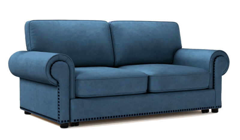 Интерьерный прямой диван Бергамо создан для небольших помещений и квартир-студий. Закругленные подлокотники, декорированные кантом по периметру, декоративные гвоздики, придают дивану роскошный вид. Американский классический стиль смотрится эффектно.