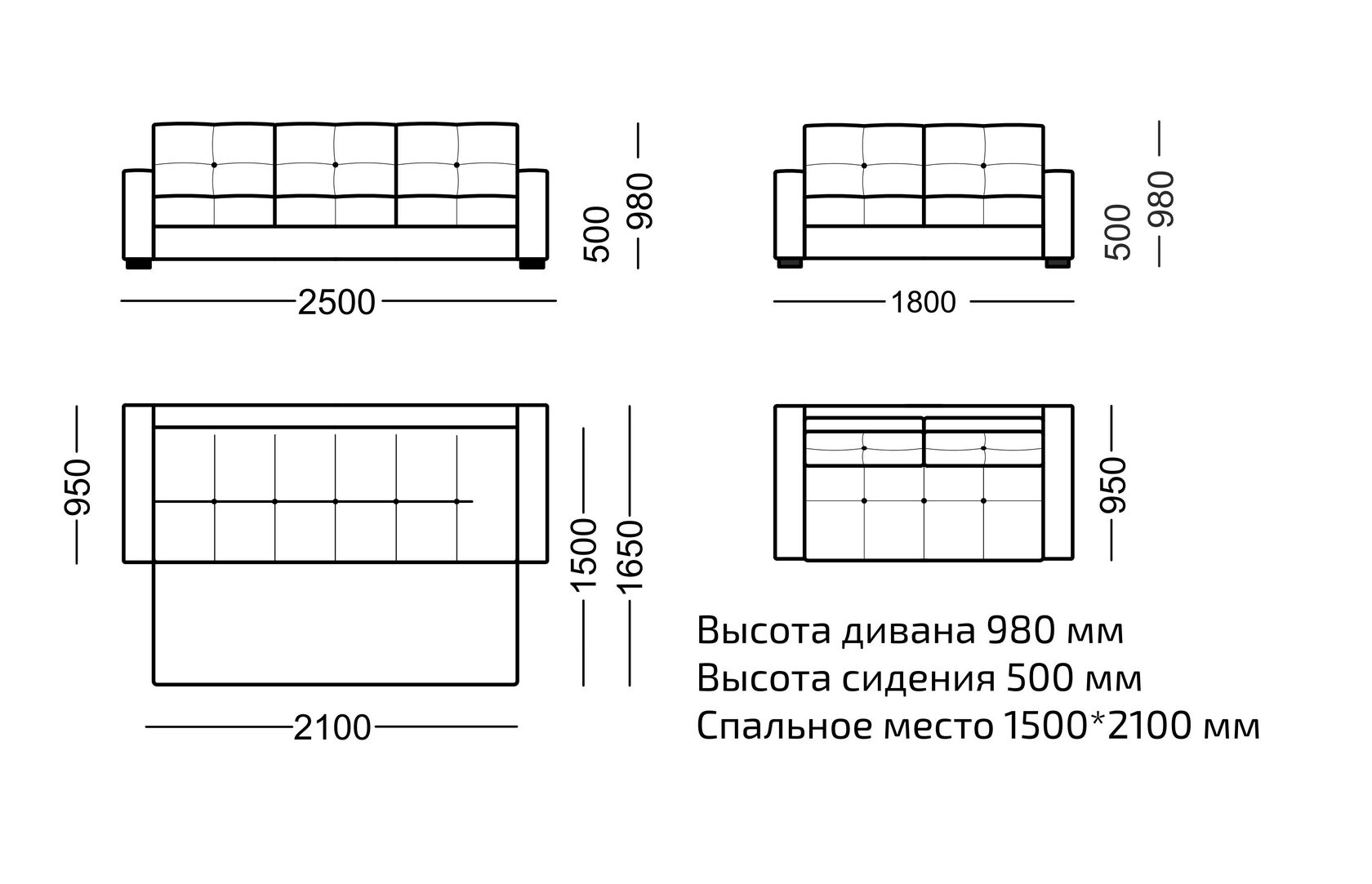| Каркас | Сухой сосновый брус, шлифованная фанера, ламинированная ДСП и ДВП, пружины типа "змейка" |