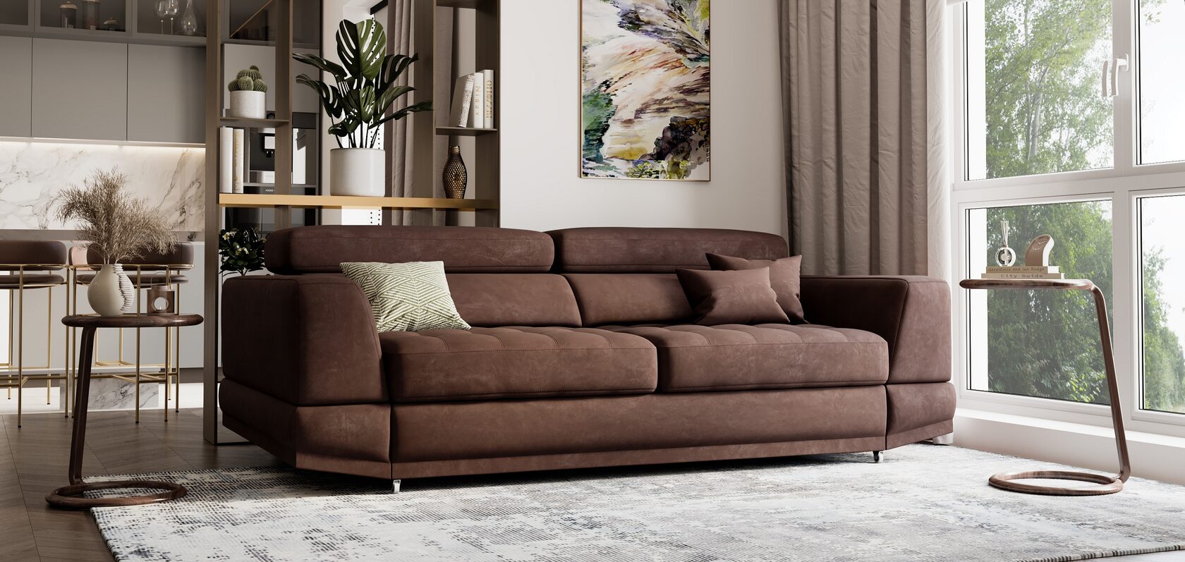 ● Диван выполнен в основной обивочной ткани со всех сторон, что позволяет зонировать пространство.