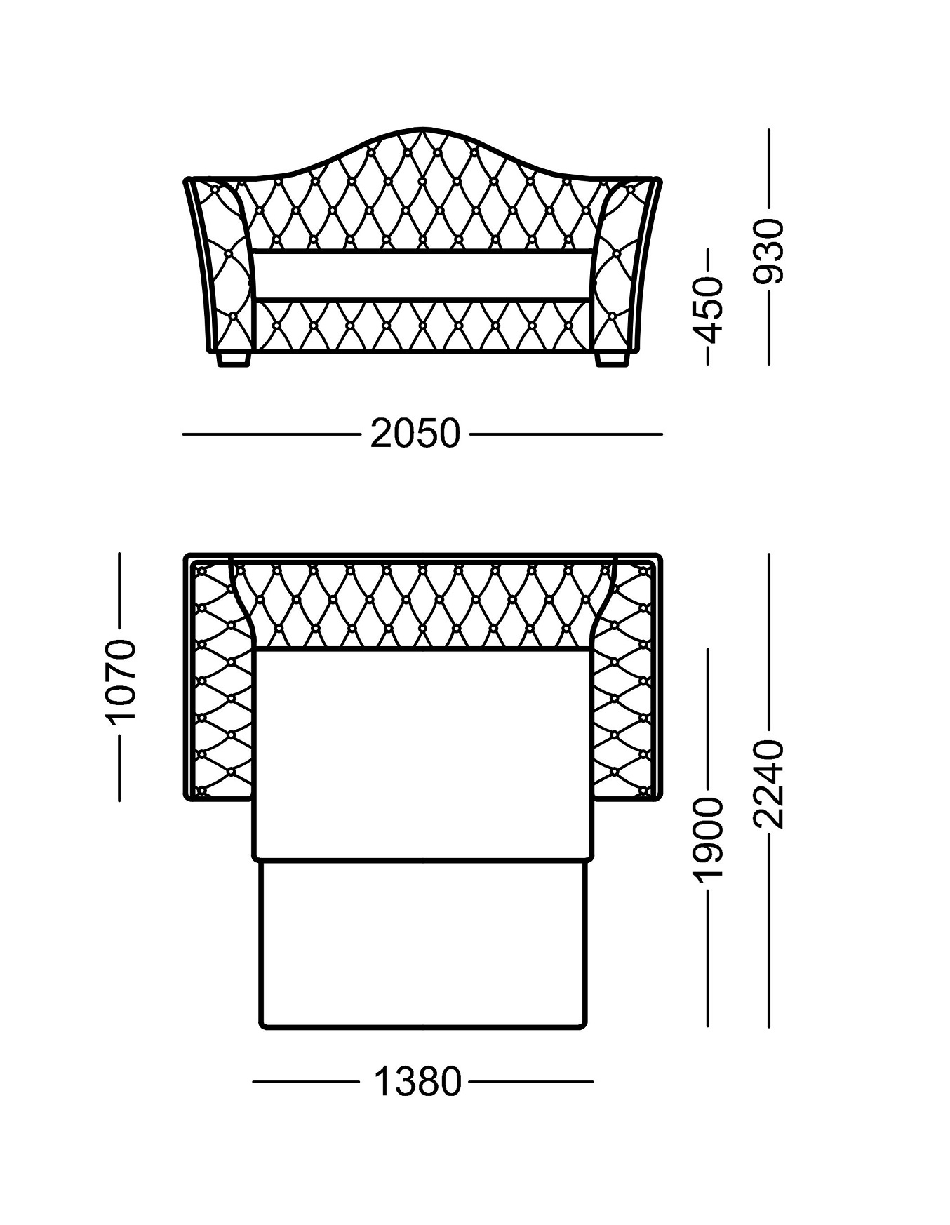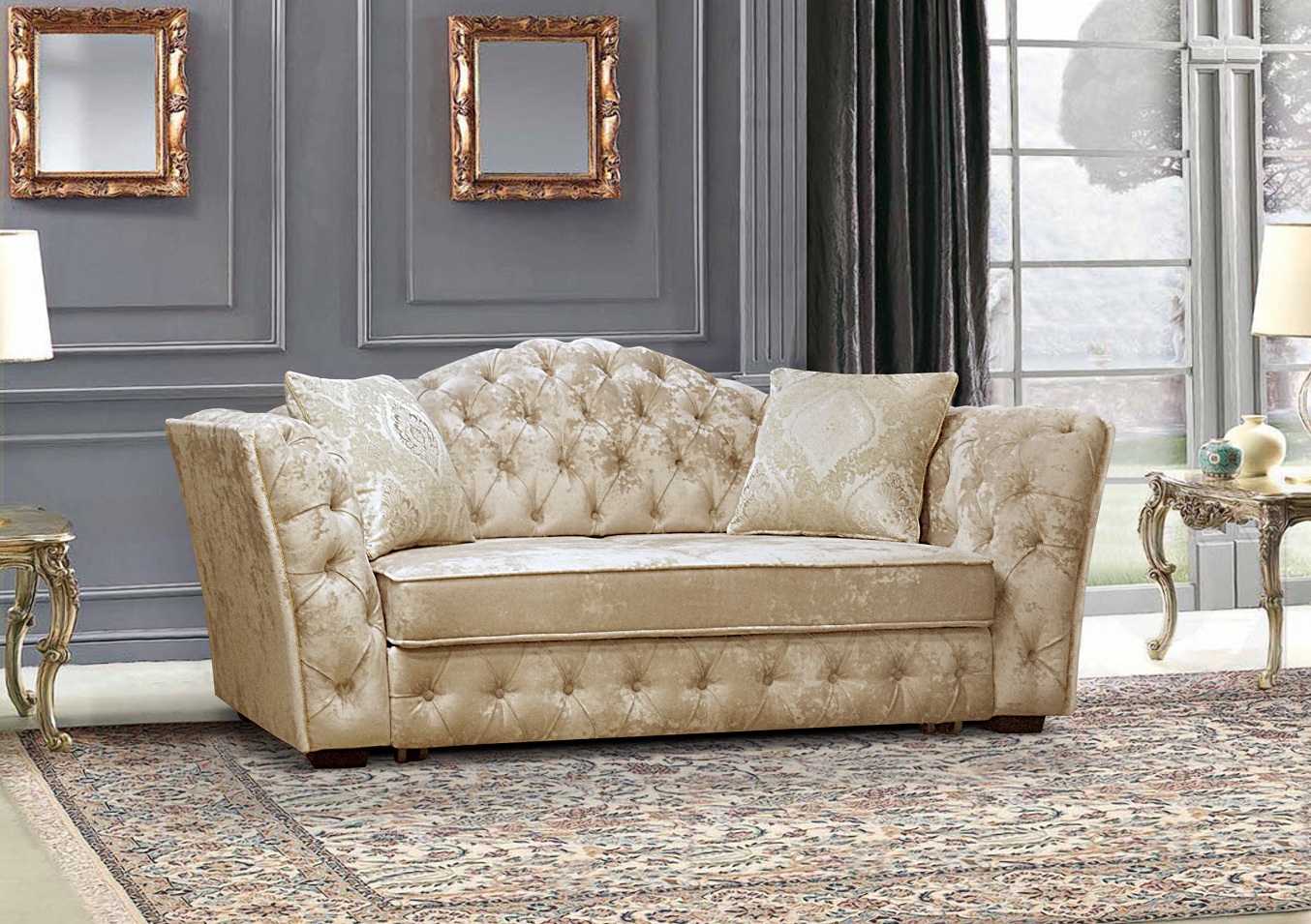 Диван Франческа — современная интерпретация классических моделей ХIХ в. Мягкие скользящие линии, совершенные пропорции, утяжка «капитоне» придают невероятную элегантность дивану. Диван подойдет к классическим интерьерам в стиле ампир, барокко, колониальный классический и современный арт-деко. Рекомендованные ткани – жаккард, велюр, бархат.
