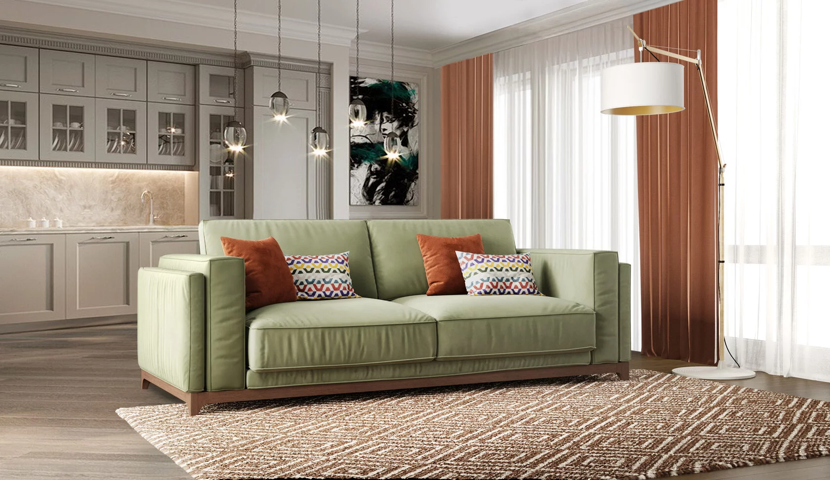 ● Диван выполнен в основной обивочной ткани со всех сторон, что позволяет зонировать пространство.