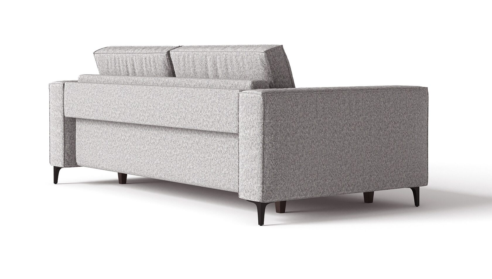 Диван Ромео — это яркий представитель современного стиля лофт. В нем сочетается мягкость драпировок, рельефные отстрочки и прямые лаконичные формы. Несмотря на внешний объемный вид, диван создает впечатление легкости и воздушности, благодаря высоким металлическим ножкам. Модельный ряд состоит из прямого дивана, дивана с оттоманкой, кресла и пуфа. Благодаря металлическим опорам высотой 135 мм, пространства под диваном достаточно для уборки с помощью робота-пылесоса. Диван разработан для полноценного отдыха и сна. Модель имеет просторное спальное место.