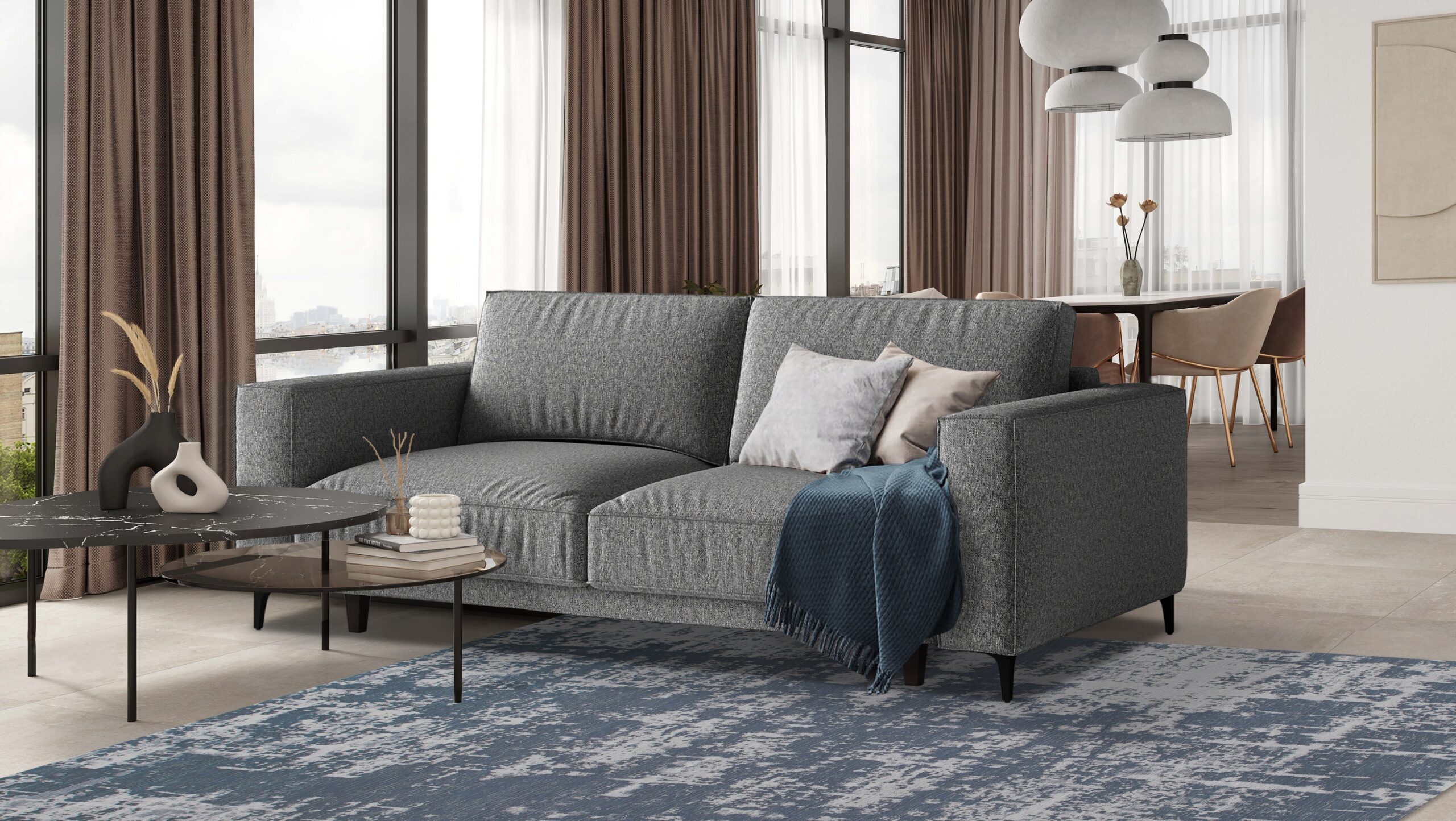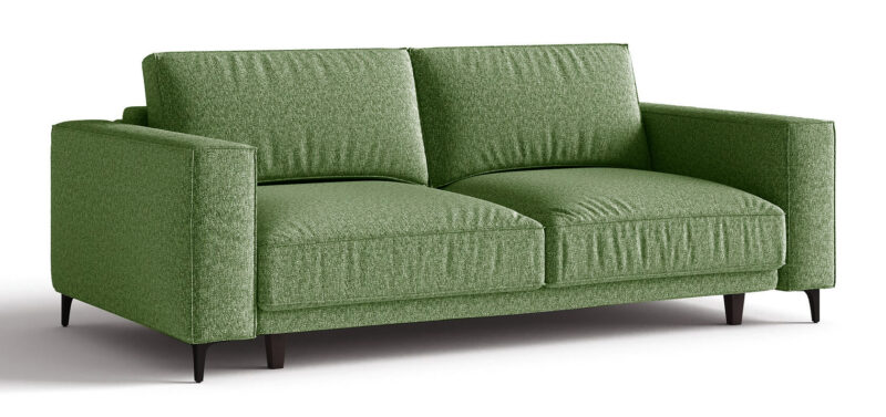 Диван Ромео — это яркий представитель современного стиля лофт. В нем сочетается мягкость драпировок, рельефные отстрочки и прямые лаконичные формы. Несмотря на внешний объемный вид, диван создает впечатление легкости и воздушности, благодаря высоким металлическим ножкам. Модельный ряд состоит из прямого дивана, дивана с оттоманкой, кресла и пуфа. Благодаря металлическим опорам высотой 135 мм, пространства под диваном достаточно для уборки с помощью робота-пылесоса. Диван разработан для полноценного отдыха и сна. Модель имеет просторное спальное место.