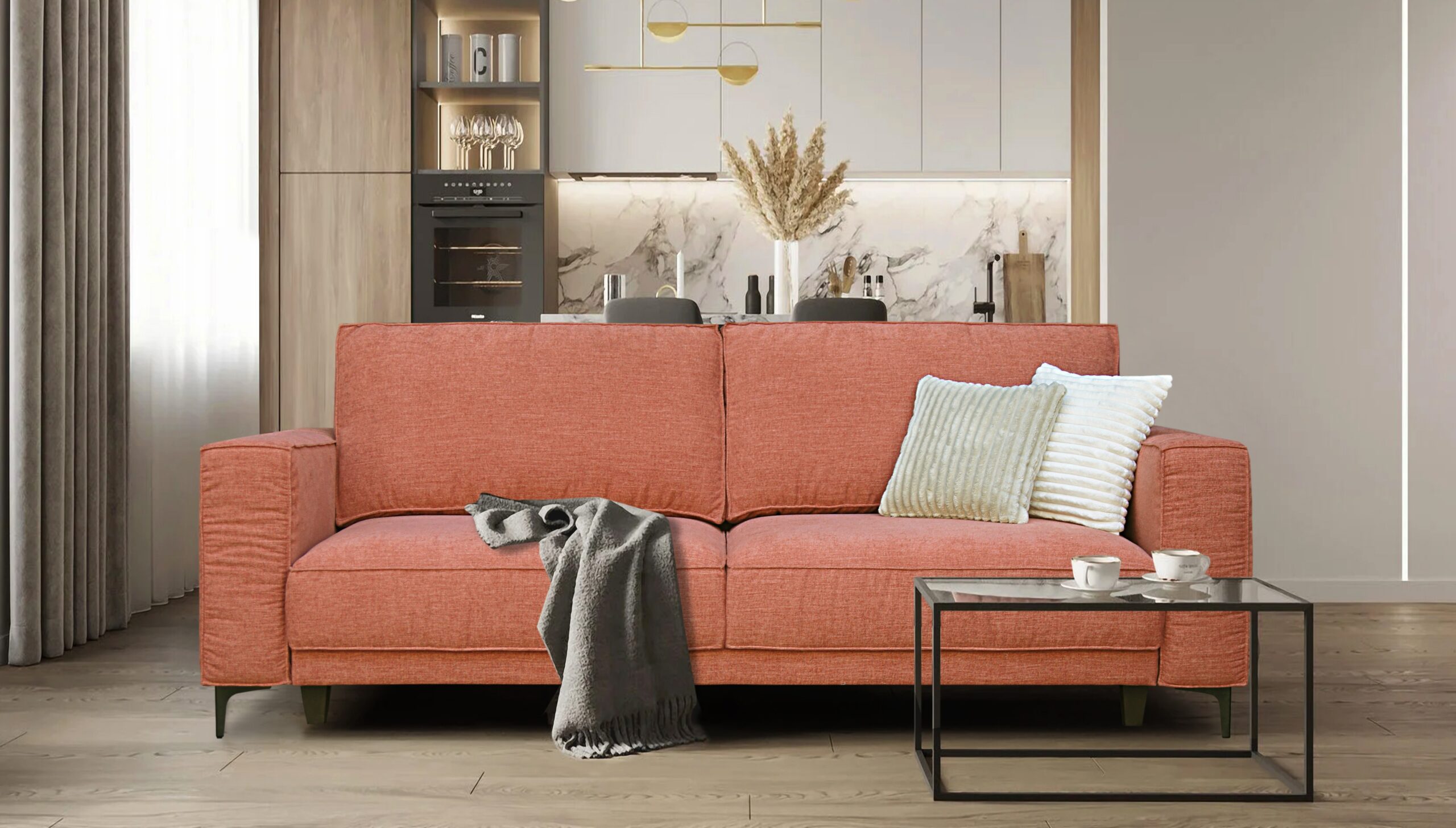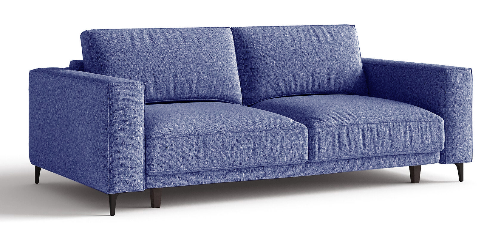 Диван Ромео — это яркий представитель современного стиля лофт. В нем сочетается мягкость драпировок, рельефные отстрочки и прямые лаконичные формы. Несмотря на внешний объемный вид, диван создает впечатление легкости и воздушности, благодаря высоким металлическим ножкам. Модельный ряд состоит из прямого дивана, дивана с оттоманкой, кресла и пуфа. Благодаря металлическим опорам высотой 135 мм, пространства под диваном достаточно для уборки с помощью робота-пылесоса. Диван разработан для полноценного отдыха и сна. Модель имеет просторное спальное место.