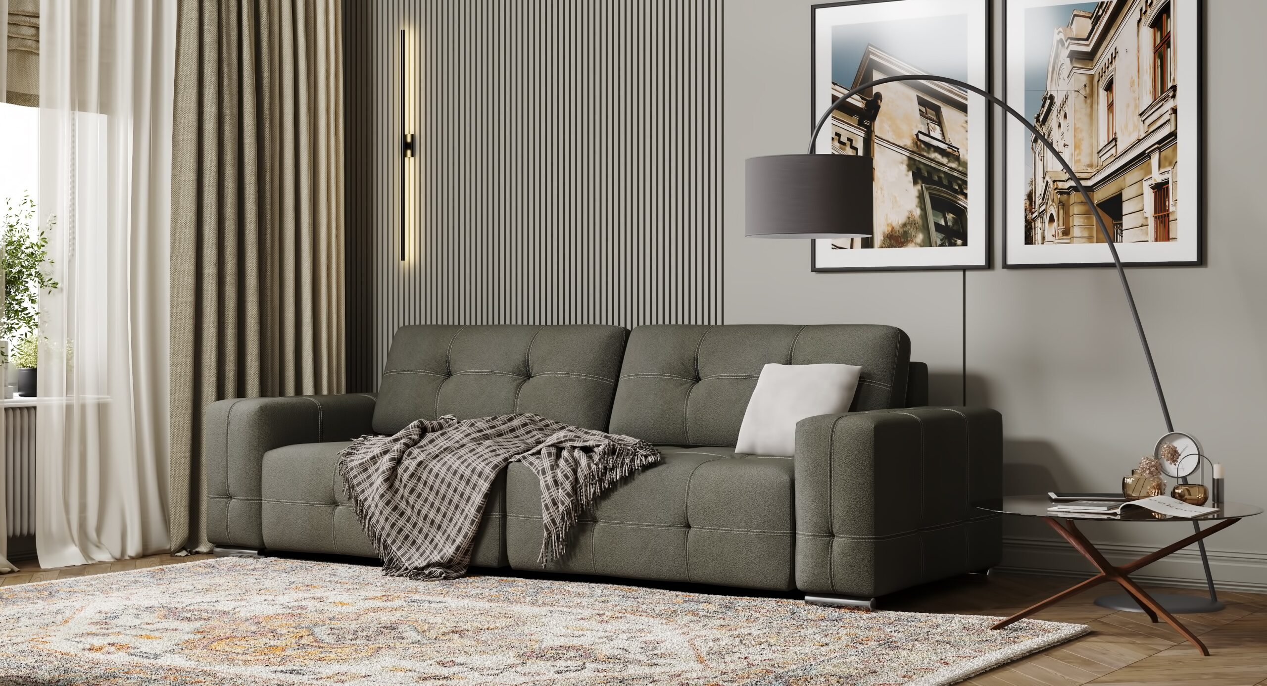 Механизм трансформации предназначен для повседневного использования, образуя просторное спальное место. Подушки спинки наполнены высококачественным синтетическим пухом.