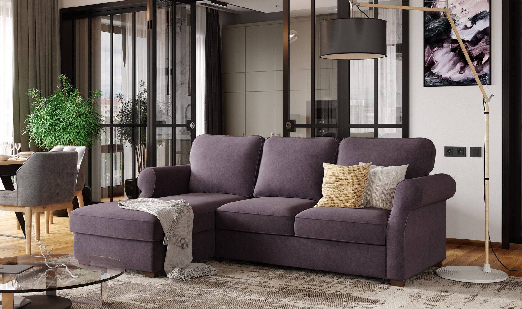 Диван угловой Амели велюр бежевый