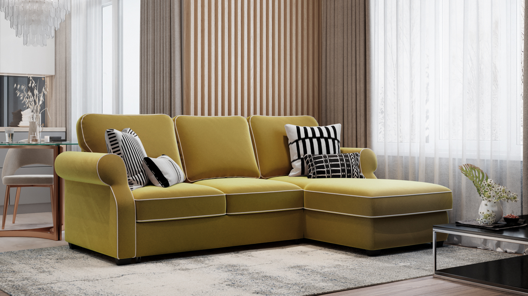 Благодаря правильному подбору ткани диван Амели можно вписать в любое стилистическое пространство от классики до прованса. Миниатюрные изогнутые боковины придают дивану изысканный вид. Контрастный кант подчеркивает плавные линии дивана. Диван Амели отлично подойдет ценителям сочетания минимализма и качества.