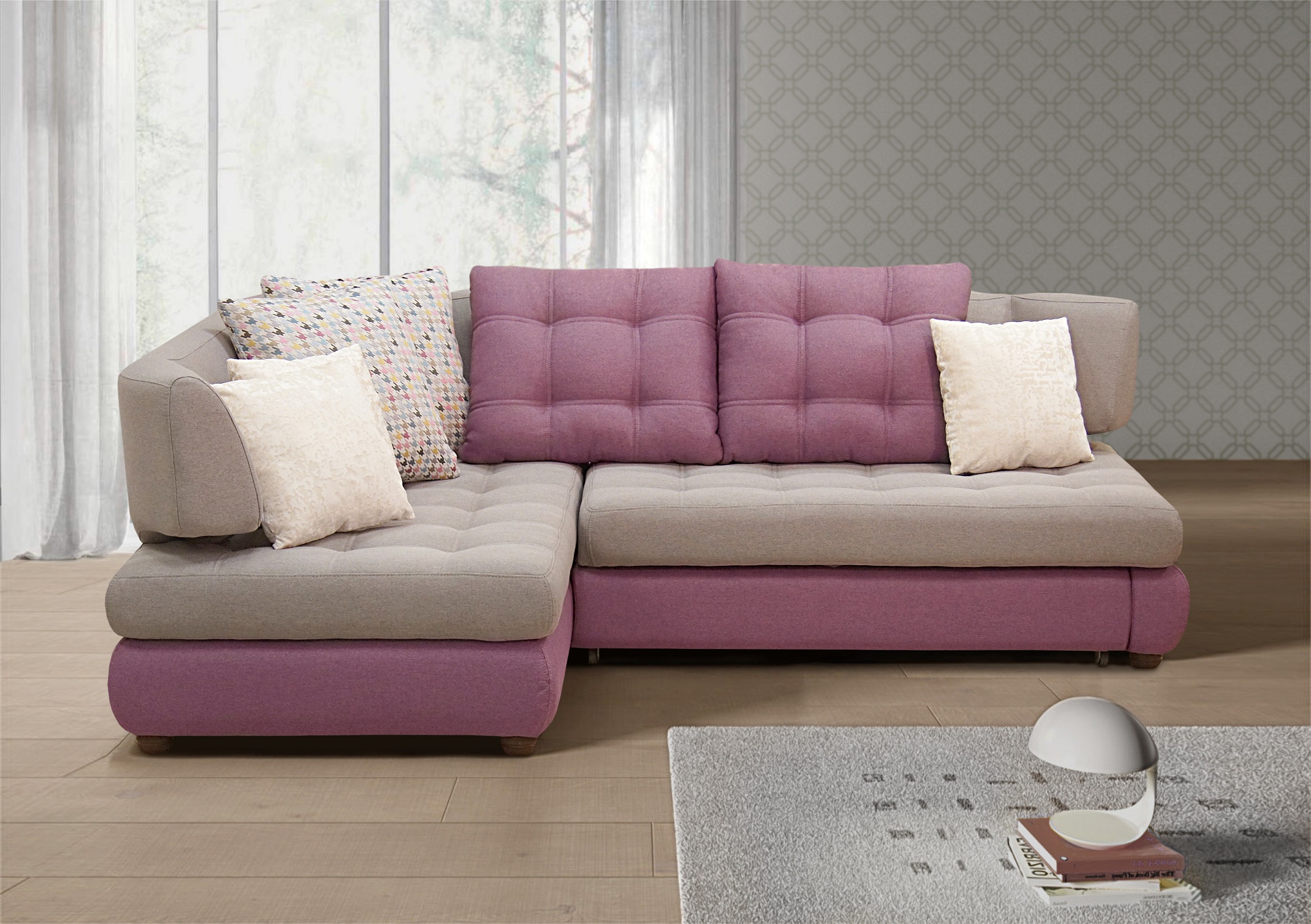 Разнообразие модульной линейки позволит максимально полно оформить интерьер комнаты. В линейку входят: прямой, угловой, П-образный диваны, а также кушетка, кресло и пуф.