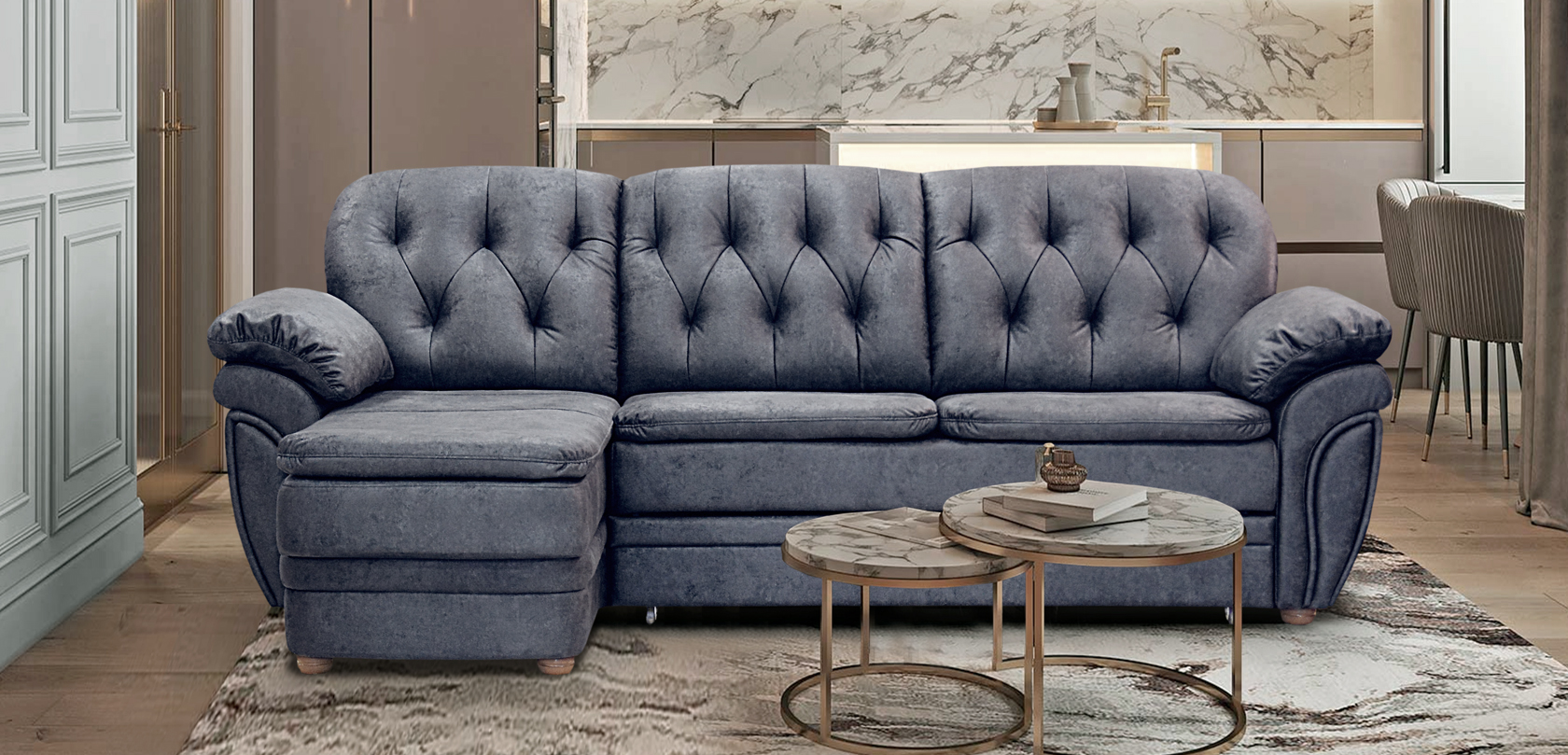 Угловой диван Дебора — это классика с большой буквы! Диван создан для тех. кто ценит традиционный интерьер и уют. Изюминкой Деборы являются изогнутые плавные формы. Безупречный классический дизайн прекрасно сочетается с практичностью, так как чехлы валиков и мягких подушек сидений съемные.