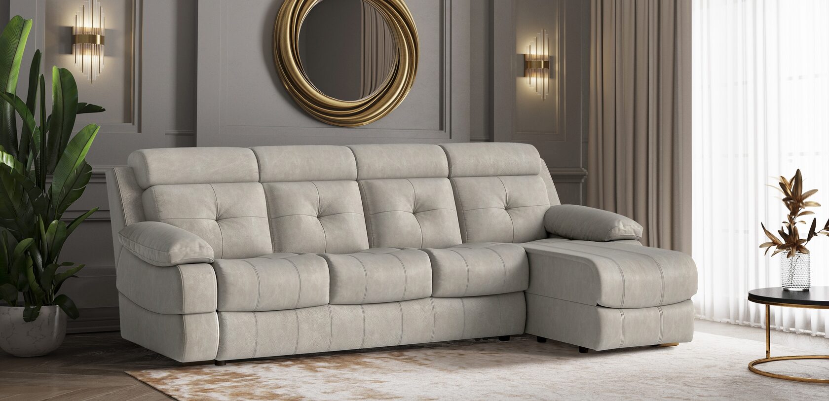 Широкий модульный ряд позволяет скомпоновать диван идеально подходящий для любого помещения: от прямого дивана с креслом-реклайнером для маленькой гостиной в квартире до шикарного углового дивана для просторного зала в загородном доме.
