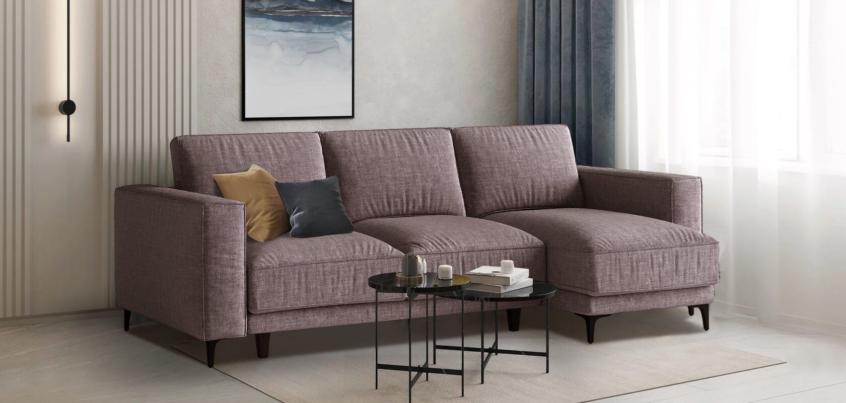 Диван Ромео — это яркий представитель современного стиля лофт. В нем сочетается мягкость драпировок, рельефные строчки и прямые лаконичные формы. Несмотря на внешний объемный вид, диван создает впечатление легкости и воздушности, благодаря высоким металлическим ножкам. Модельный ряд состоит из прямого дивана, дивана с оттоманкой, кресла и пуфа. Благодаря металлическим опорам высотой 135 мм, пространства под диваном достаточно для уборки с помощью робота-пылесоса. Диван разработан для полноценного отдыха и сна. Модель имеет просторное спальное место.