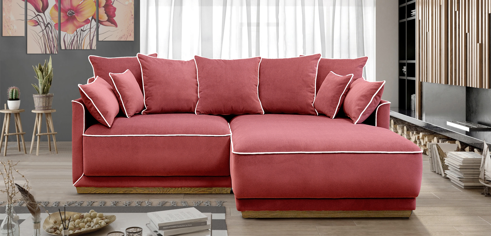 В этом диване гармонично сочетаются удобное, глубокое посадочное место и мягкие пуховые подушки. Изюминкой модели являются декоративные канты на самом диване и на всех подушках.