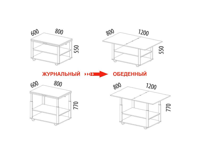 Раскладной журнальный стол-трансформер легко превращается в обеденный или письменный стол и имеет четыре варианта трансформации. За одну цену Вы приобретаете: 2 журнальных и 2 обеденных стола.