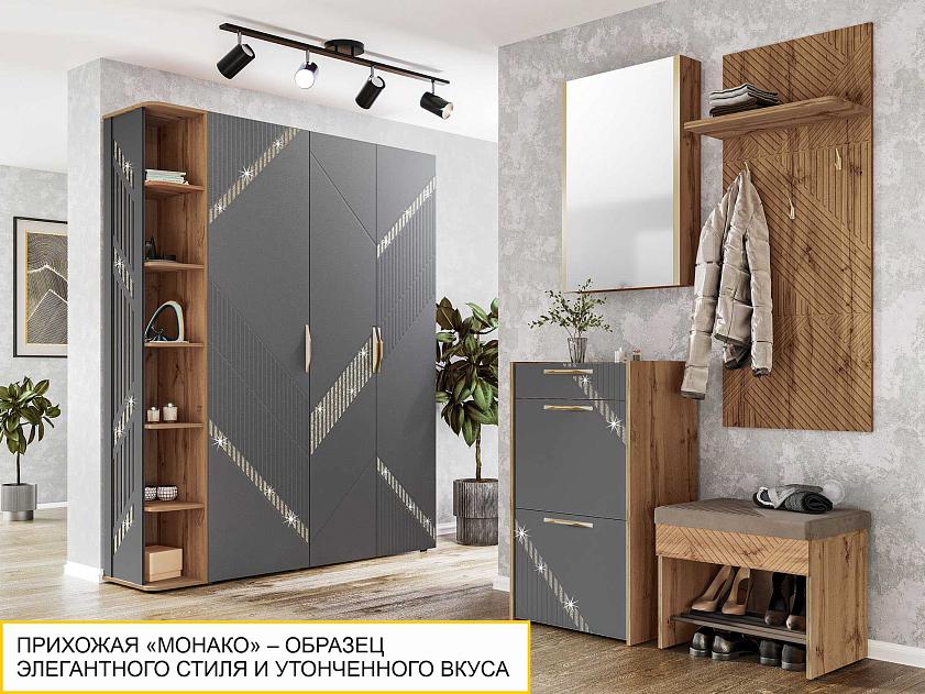 Зеркало с полками «Монако 402.17» является частью модульной серии «Монако». «Монако 402» – образец элегантного стиля и утонченного вкуса. Сочетание матовой графитовой поверхности фасадов с благородной древесной текстурой «Дуб Вотан» создает особую атмосферу гармонии и комфорта.