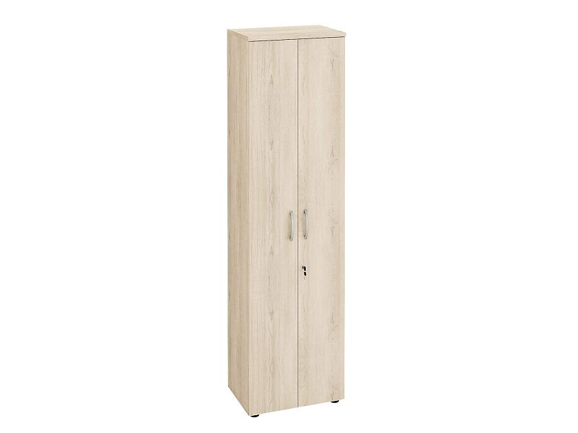Набор мебели для офиса состоит из углового рабочего стола с тумбой и закрытого шкафа с полками.