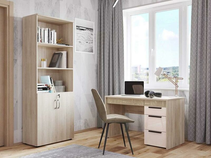 Письменный стол с выдвижными ящиками позволяет организовать удобное рабочее пространство.