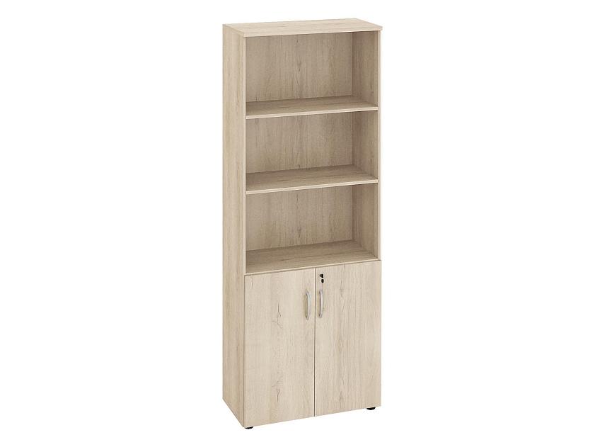 Стеллаж оснащен множеством открытых и закрытых полок, что позволяет организовать продуманную систему хранения.