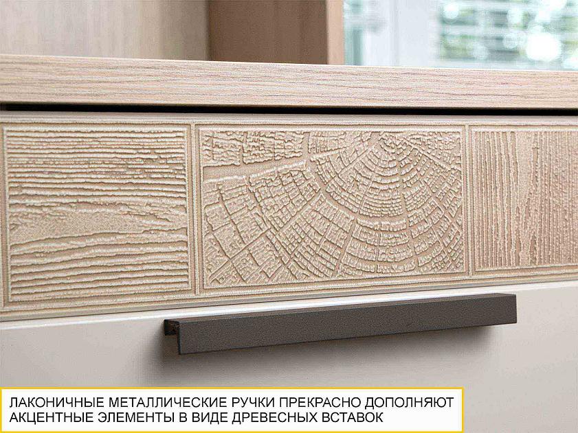 Ящик стола декорирован фактурной патинированной вставкой с имитацией спила натурального дерева. Декор не стирается и не тускнеет со временем.