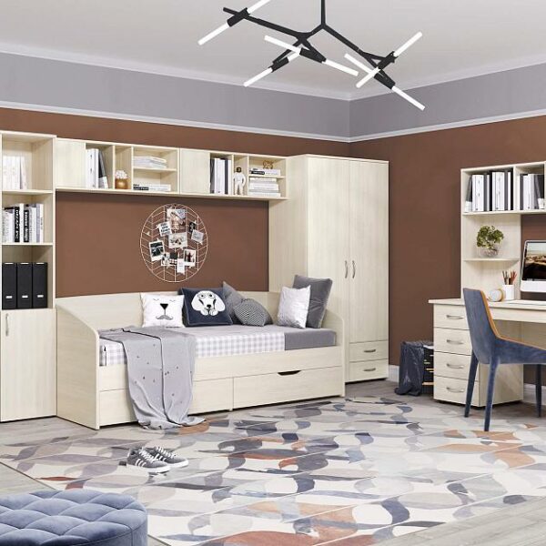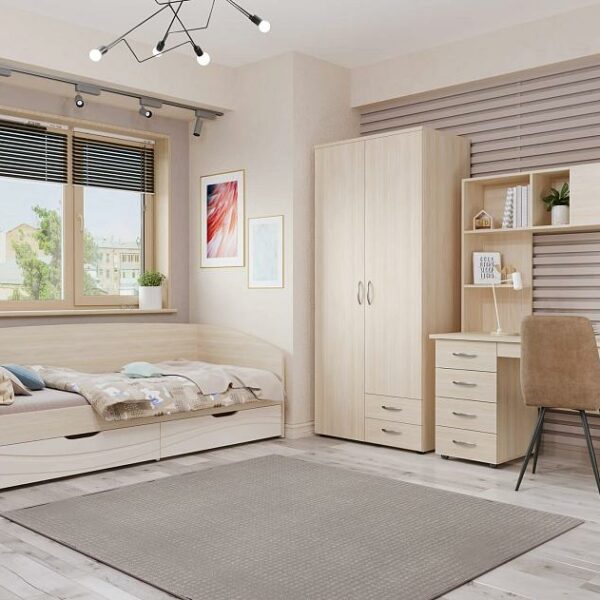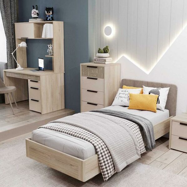 Спальный гарнитур «Кашемир 46» — символ достатка и комфорта. Обратите своё внимание на сочетание натуральных кашемировых оттенков с тактильно приятными фактурами древесного декора, лаконичные формы и мягкие цвета. В декоре нет ничего кричащего, только спокойствие и уют. Продуманный функционал и эргономичность набора помогут сосредоточиться на важной работе или заняться творчеством.