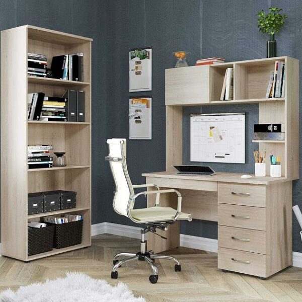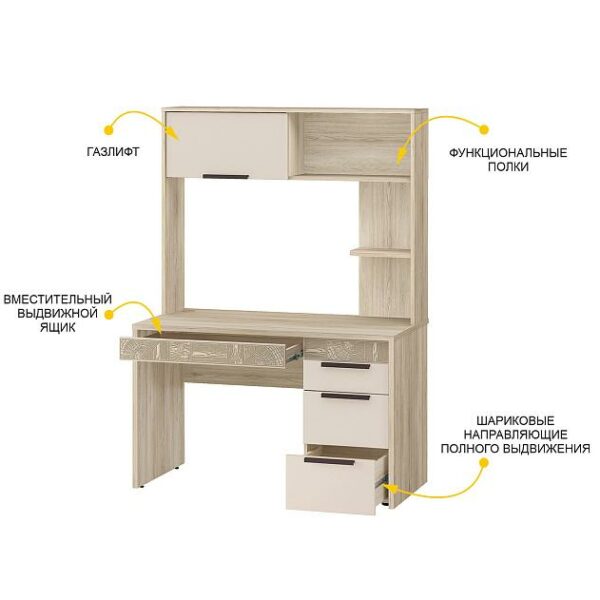 Письменный стол с выдвижными ящиками позволяет организовать удобное рабочее пространство.
