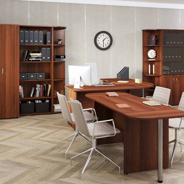 Набор мебели «Рубин 40 596» позволит организовать комфортное рабочее место и продуманную систему хранения в домашнем кабинете, максимально эффективно используя пространство комнаты.
