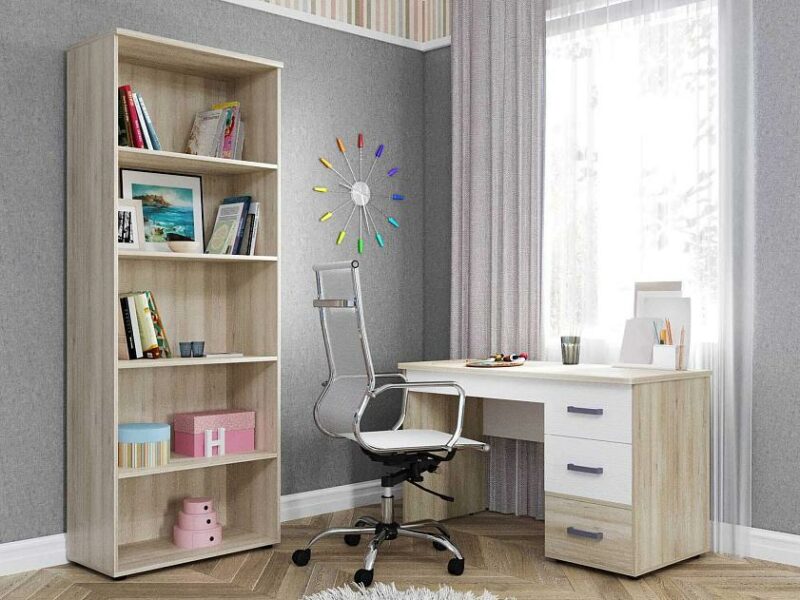 Функциональный стол позволяет с удобством заниматься учебой или творчеством.